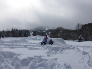 前日はひたすらソリをしていましたが今日は雪質が変わり滑りが悪い?