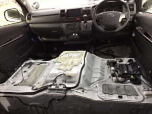 ハイエースの室内エンジン音の防音始めます。